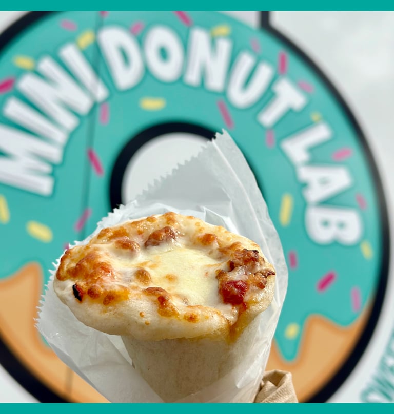 Prepare to be amazed by our unique & delicious Pizza Kone, a culinary innovation straight from the laboratory of flavor at Mini Donut Lab! Crafted with the best pizza crust, each cone crafted from the highest quality ingredients, shaped into a unique cone and filled to the brim with creamy cheese and your choice of delectable toppings. It's a taste experiment you won't want to miss!