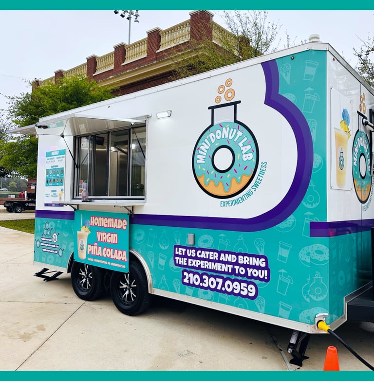 Donut Dreams On Wheels: Mini Donut Lab's food truck Magic! a mobile haven for donut lovers everywhere. Highlight the enchanting experience of mini donuts being freshly made on-site, adding a touch of magic to any event, from intimate gatherings to large-scale celebrations.